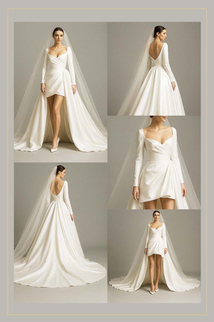 Modern bridal silhouettes with sculpted drapes and eternal style veils